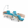 Экономичная двух-функциональная кровать с  ПЕРЕВОРОТОМ (поворотом) больного с помощью винтовых регулировок ложа и независимыми винтовыми регулировками угла наклона спинной секции.