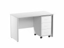 - Стол имеет 2 тумбы, каждая с 3-мя выдвижными ящиками на роликовых направляющих, выдерживающих нагрузку до 5 кг, размеры тумбы — 400x560x850 мм